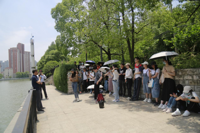 本次实习由我院张勇老师、陆文洋老师与四名助教带队,于上午9点开始至下午6点结束,历时9个小时;老师与同学们沿苏州河市区段从丹巴路桥步行至外白渡桥,行程18公里;实习全程设点8个,10余位老师为学生们讲授与苏州河有关的环境治理方式、治理措施、四史教育等知识,解答了20个环境思考题,是一次知识结合实践、专业结合思政教育的校外实践活动。为体现低碳环保的生活理念,本次实习未安排同学们统一乘车,而是建议同学们乘坐公共交通自行前往集合点,集合后沿苏州河全程步行或骑行。