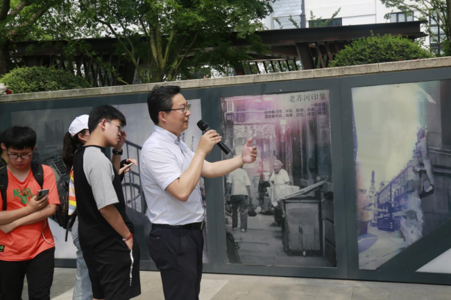 上午行程结束后,同学们原地解散,自行吃午餐,“行走的苏州河”校外实践活动进入中午的一小时休息时间。