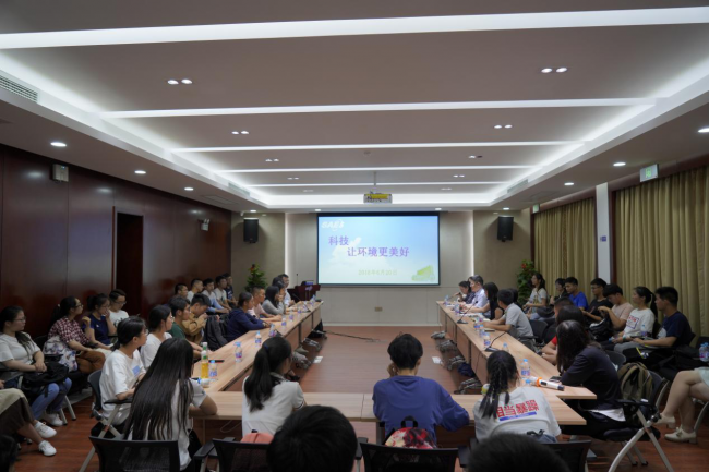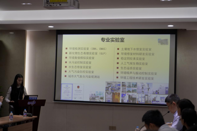 在学术活动室内,上海市环境科学研究院团委的工作人员王晓奥向大家总体介绍了上海市环境科学研究院的基本情况、组织结构、人力资源、专业领域及科研条件等,我校生态与环境科学学院张勇老师也对《环境问题观察》进行了课程的介绍和本次活动的介绍。