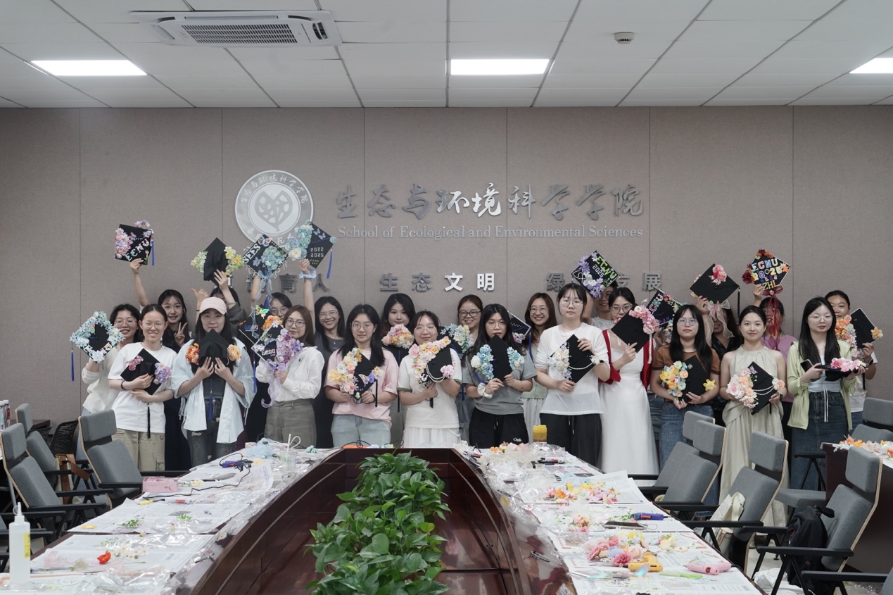 为营造温馨的毕业季氛围,给毕业生们增添一抹独特而美好的回忆,生态与环境科学学院于2025年5月15日下午在资环楼269室举办学位帽簪花活动。本次活动由院研会文体部承办,吸引三十余名毕业生参与,共同打造专属学位帽,定格青春记忆。