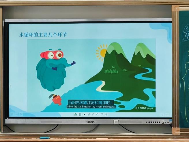 随后,课程进入水循环环节。讲师们通过动画演示,详细讲解了水循环的主要环节,包括蒸发、凝结、降水、水汽输送、地表径流、下渗和地下径流。运用形象的比喻,如“蒸发就像水在太阳下‘逃跑’,变成水蒸气进入大气;风就像大自然的‘快递员’,把水蒸气从一个地方带到另一个地方”,让同学们对水循环的过程有了更直观的认识。