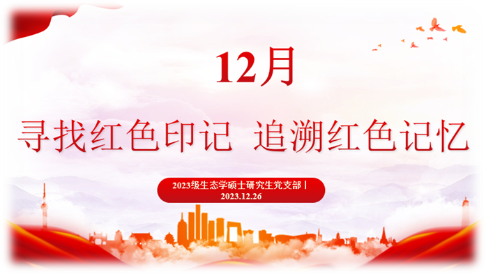2023年12月26日下午,生态与环境科学学院2023级生态学硕士研究生党支部开展以“寻找红色印记 追溯红色记忆”为主题的党日活动。活动由支部书记毛欣钰主持,支部全体党员参会。