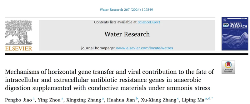 2024年9月29日,华东师范大学生态与环境科学学院马黎萍教授团队在Water Research期刊上发表了题为“Mechanisms of horizontal gene transfer and viral contribution to the fate of intracellular and extracellular antibiotic resistance genes in anaerobic digestion supplemented with conductive materials under ammonia stress”的研究论文,系统地阐明了CMs对氨抑制的AD系统内iARGs和eARGs迁移转化及其HGT机制的影响。